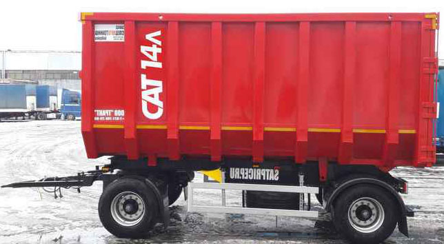 Прицеп автомобильный двухосный самосвальный САТ14Л (задняя разгрузка) предназначен для перевозки металлолома, любых объёмных сыпучих, инертных, навалочных грузов (в том числе промышленных и строительных отходов, и пр.).